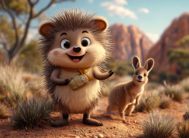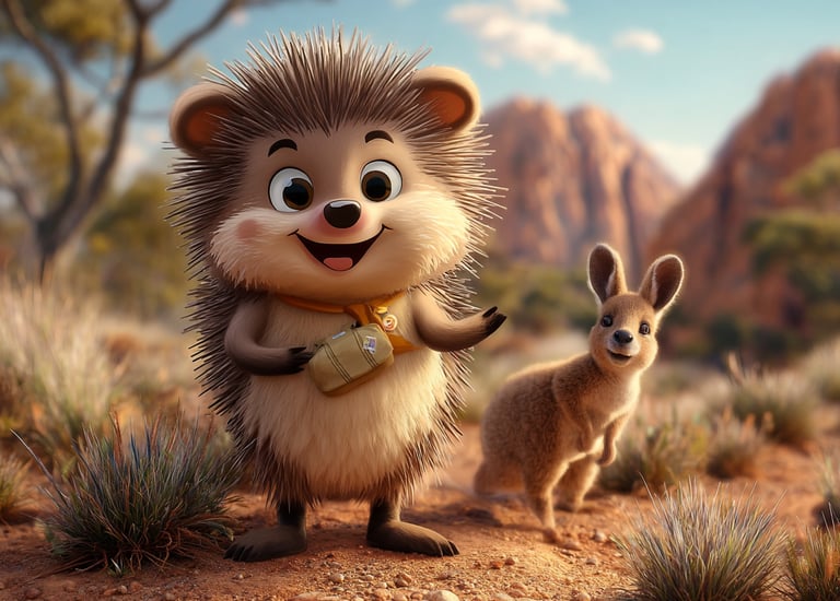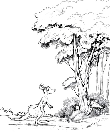 While trekking through the Australian Outback, Tumbleberry finds a baby kangaroo (a joey) who has lost its way back to its mother’s pouch. Using only the items in his tiny backpack, how does Tumbleberry help the joey get home? What obstacles — like a dusty willy-willy (dust devil) or a prickly bush — do they face?