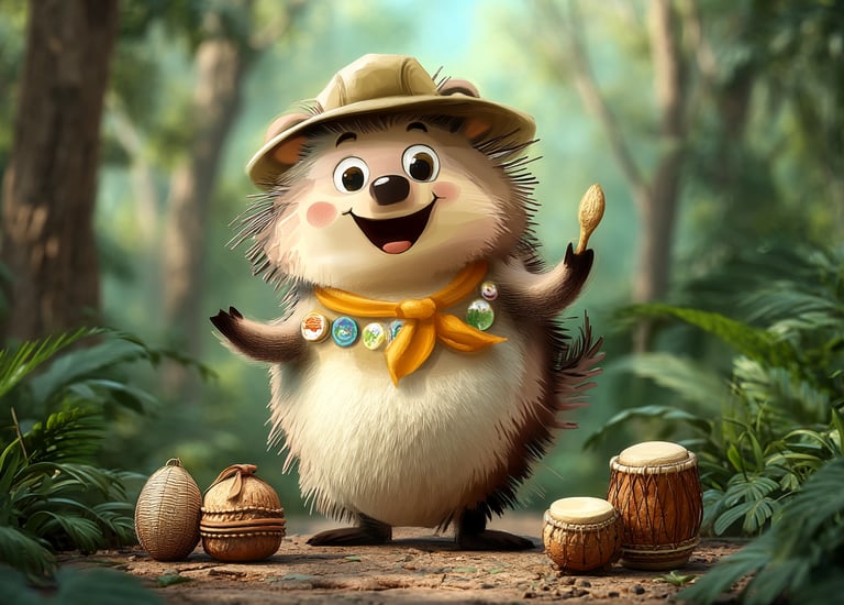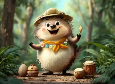 Deep in the Congo rainforest, the animals want to start a band, but they don't have instruments! Tumbleberry decides to help them find 'natural' instruments in the jungle. What can the gorilla use for a drum? What can the okapi use for a flute? What can the other animals use? Write about the song they play together.