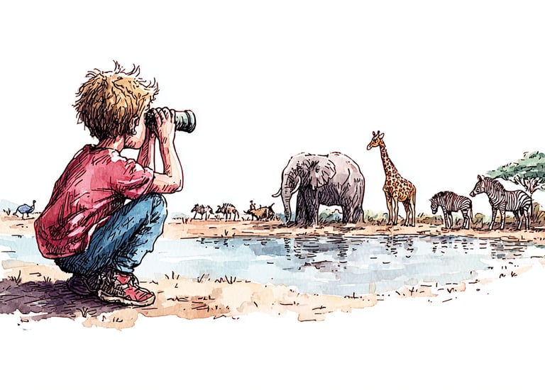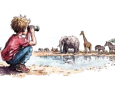Listen: Ask a grown-up to play savanna sounds (find these online). Listen carefully for danger sounds (like a hiss or a roar) mixed in with gentle sounds (like a babbling stream or birds).
