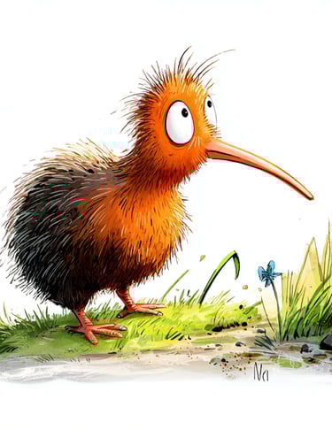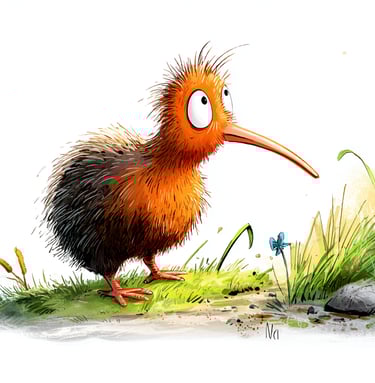The Kiwi is my new favorite friend. Like me, he's small, round, and shy. Plus, the Kiwi's the only bird in the world with nostrils at the very tip of its beak, which it uses to sniff out snacks in the dirt—like me!