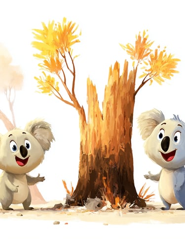Gum trees (eucalyptus) are really good at surviving bushfires. They have hidden buds that can sprout new leaves and branches even after a fire's burned everything around them. They're true survivors!