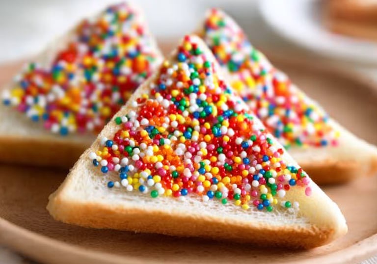 Australia’s favorite magical snack—buttery bread topped with a rainbow of sparkles.